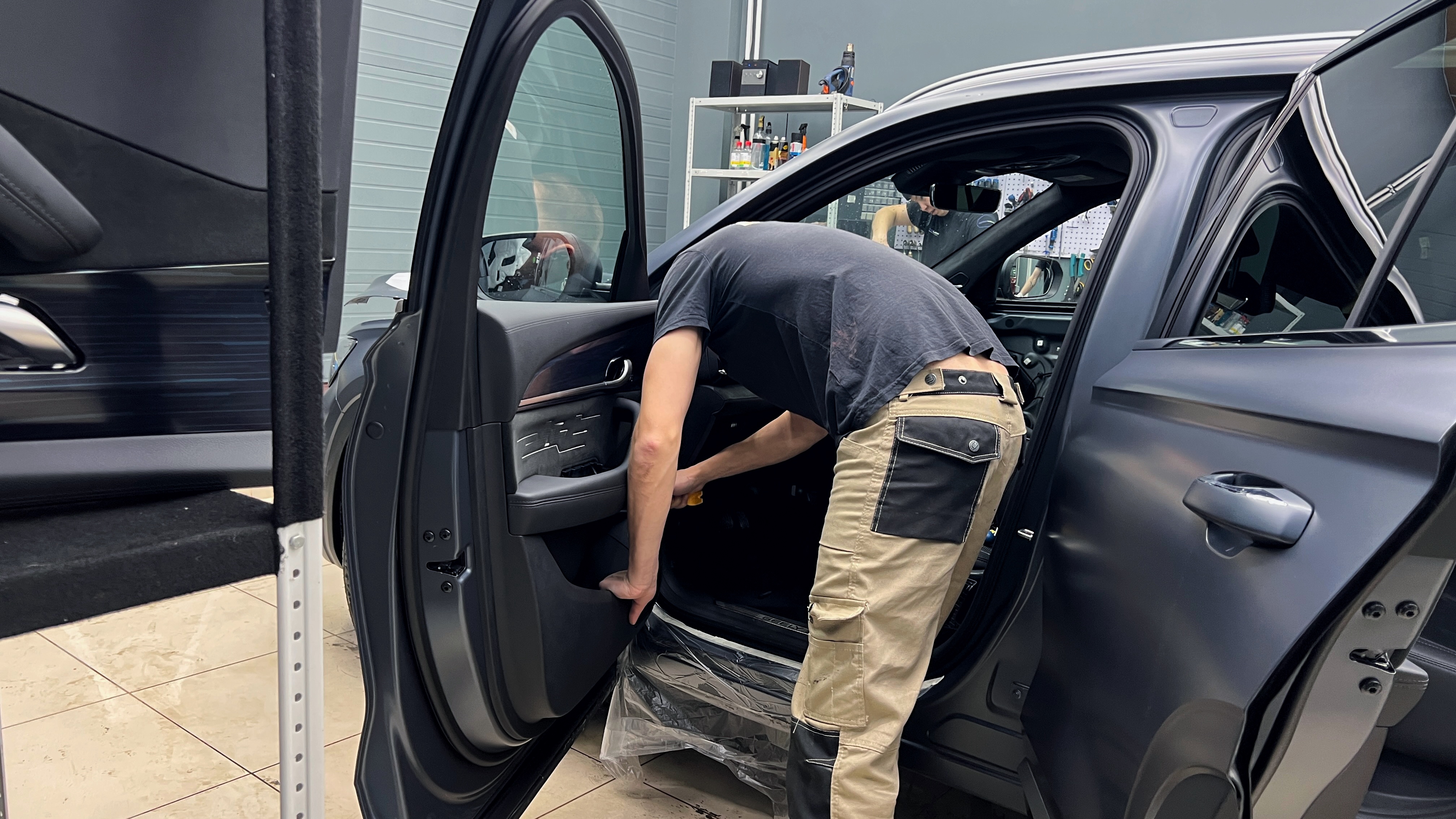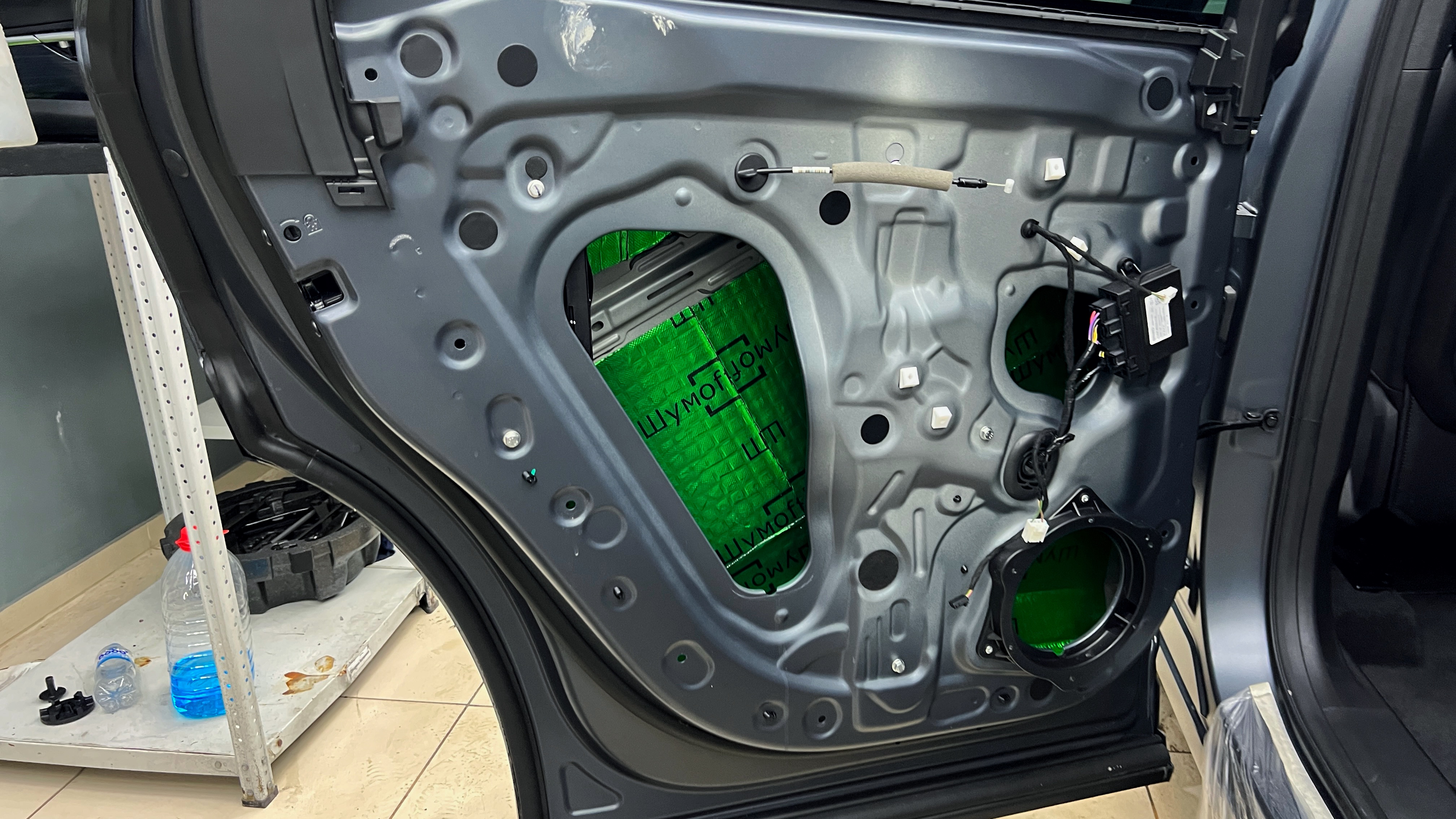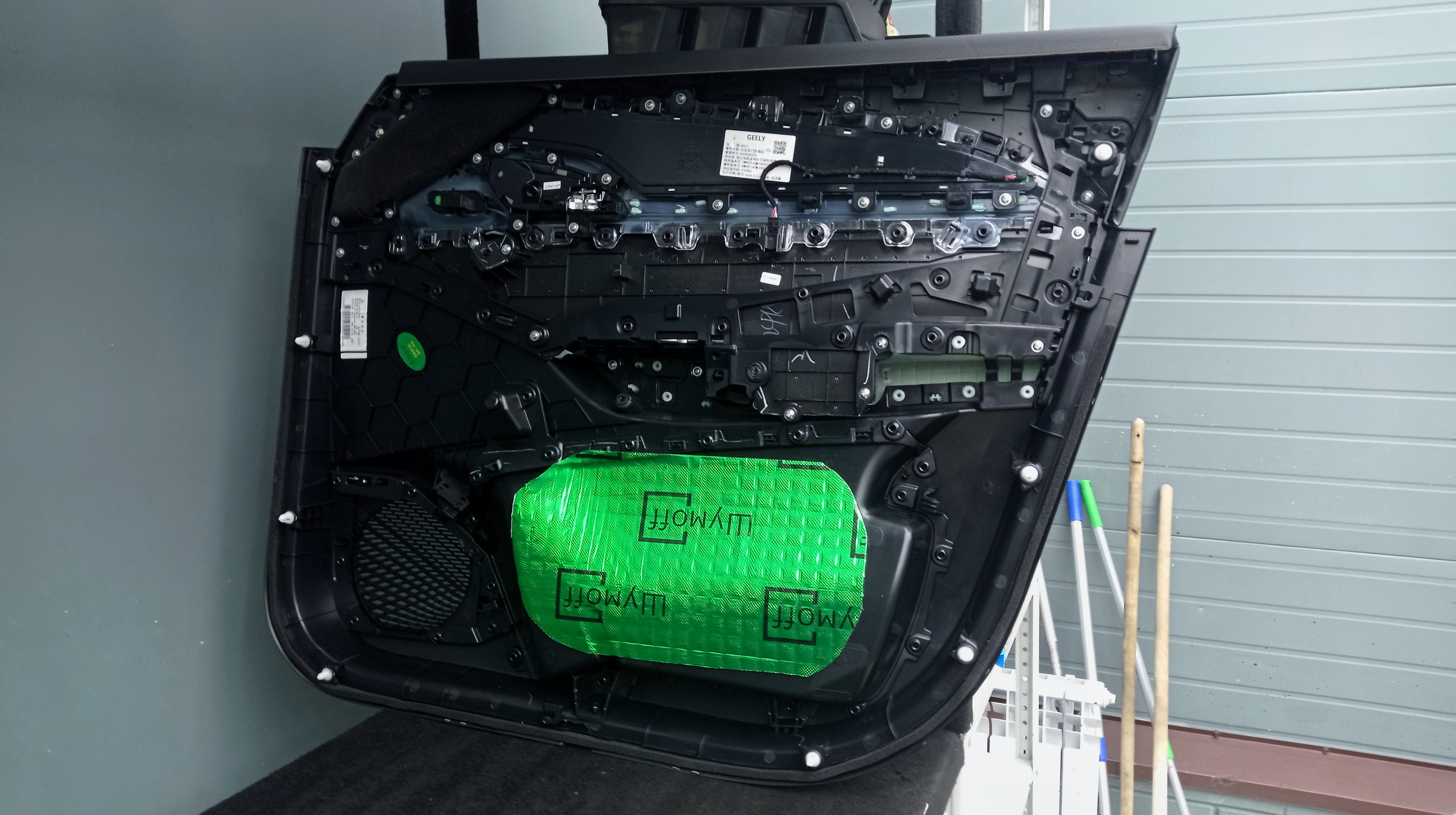 Шумоизоляция двери Джили Монжаро Вторым слоем внутрь двери поверх виброизоляции клеим современный шумо и теплоизолятор Шумофф Комфорт 6.