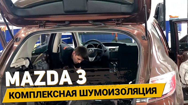 Автомобили Mazda последних поколений отличаются очень слабой шумоизоляцией, а в сочетании с тонким металлом сводят её на нет. Владелец сетовал на шум со стороны дорожного покрытия, арок, дверей. Исправить эти недостатки можно, сделав дополнительную шумоизоляцию Мазды 3.